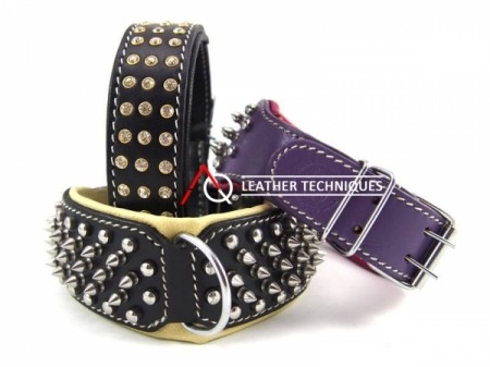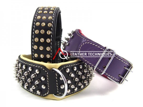 PREMIUM QUALITY LEATHER, STAINLESS STEEL HARWARES/ SPIKES AND CRYTAL RIVETS .